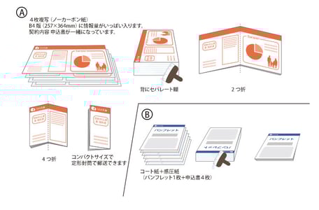 郵送物の一体化や、配布物のシンプル化、セットアップのコストと時間の削減にも効果的です。